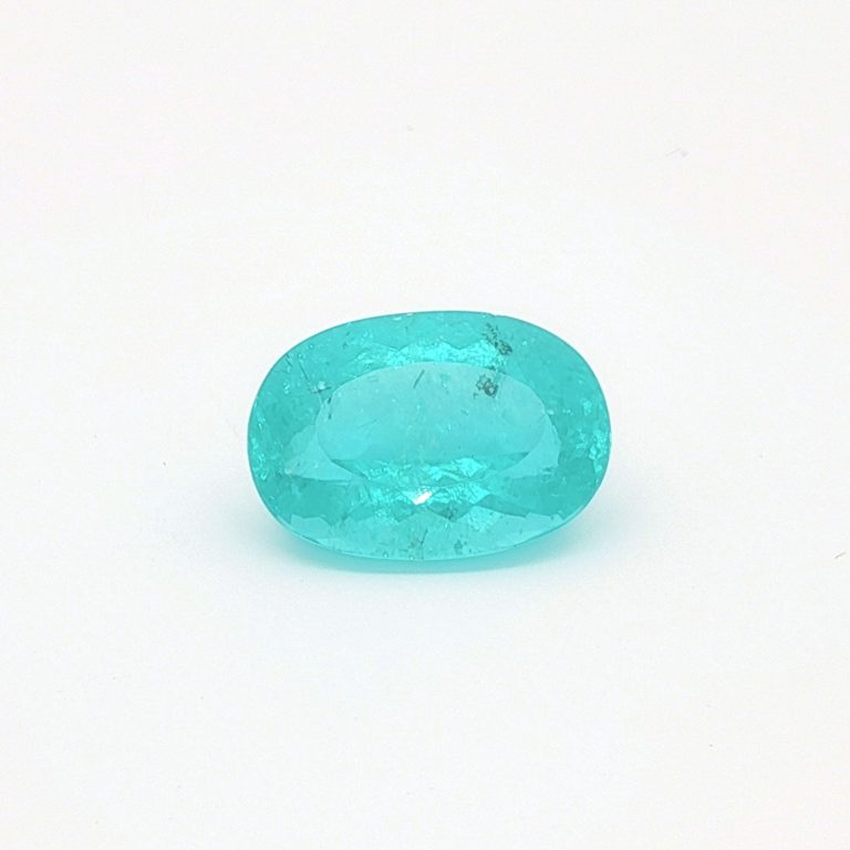 A lively 2.34 ct oval Paraiba featuring neon-like greenish-blue brightness and a refined cut. Perfect for a luxury ring or pendant
